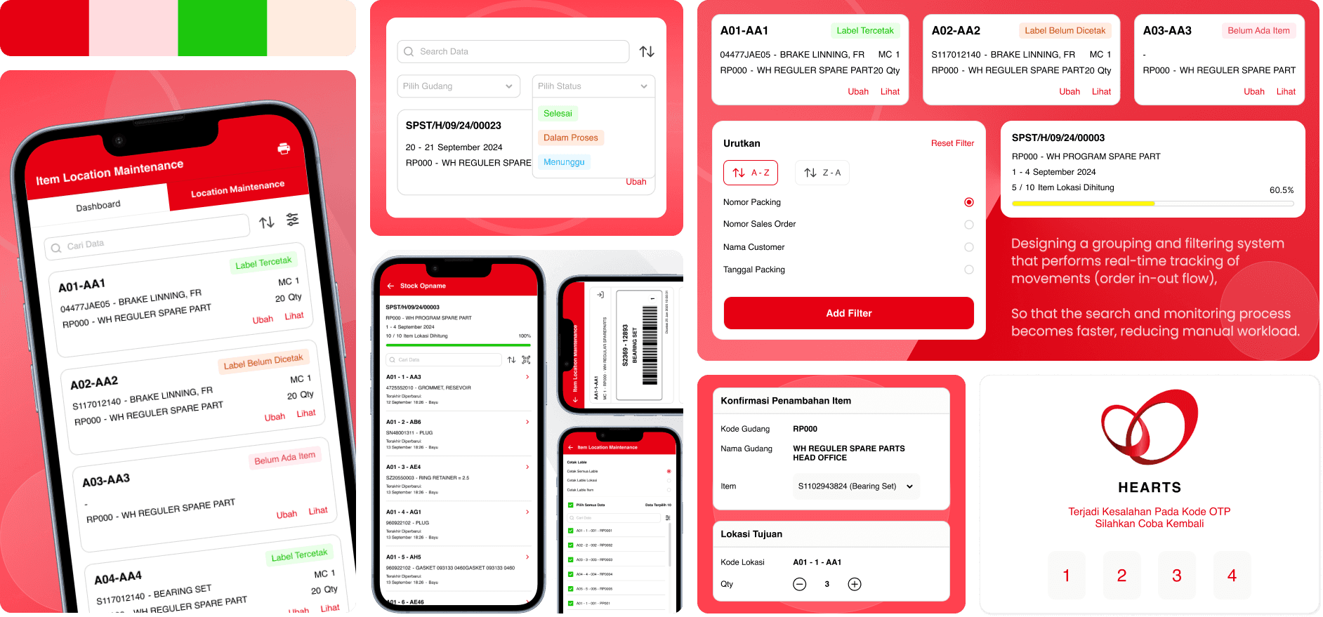 Designing a grouping and filtering system that performs real-time tracking of movements (order in-out flow), so that the search and monitoring process becomes faster, reducing manual workload.
